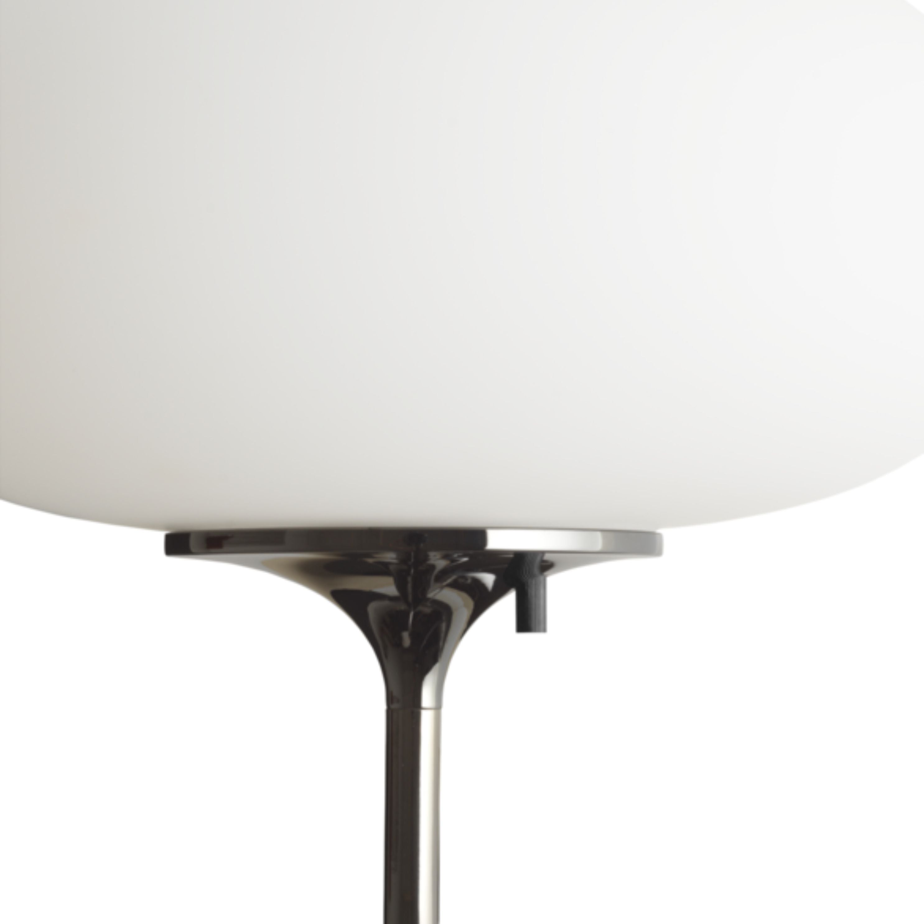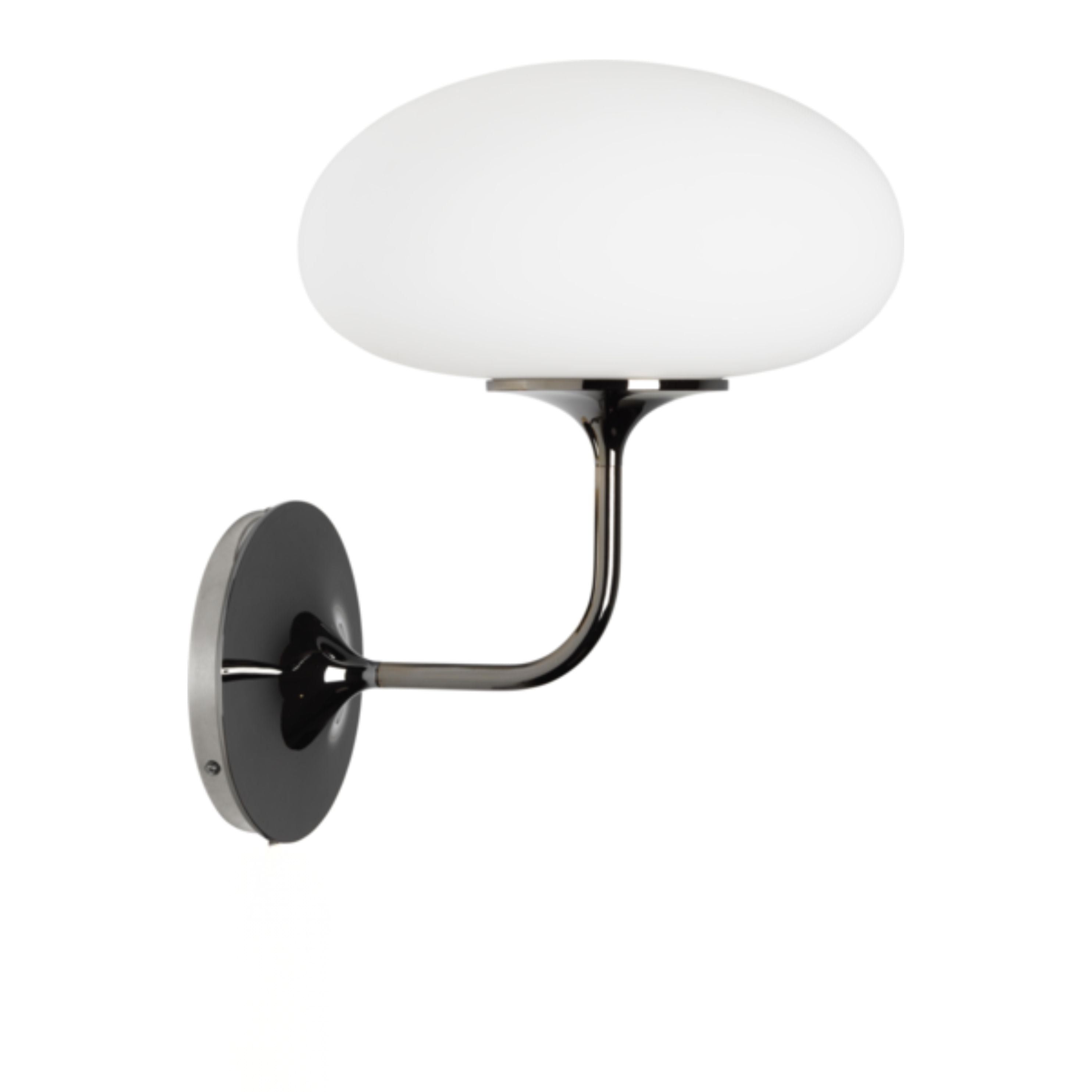 Executed in frosted mouth-blown glass shade and a painted steel base this clever wall light update is newly remastered by GUBI to suit numerous interior applications.
