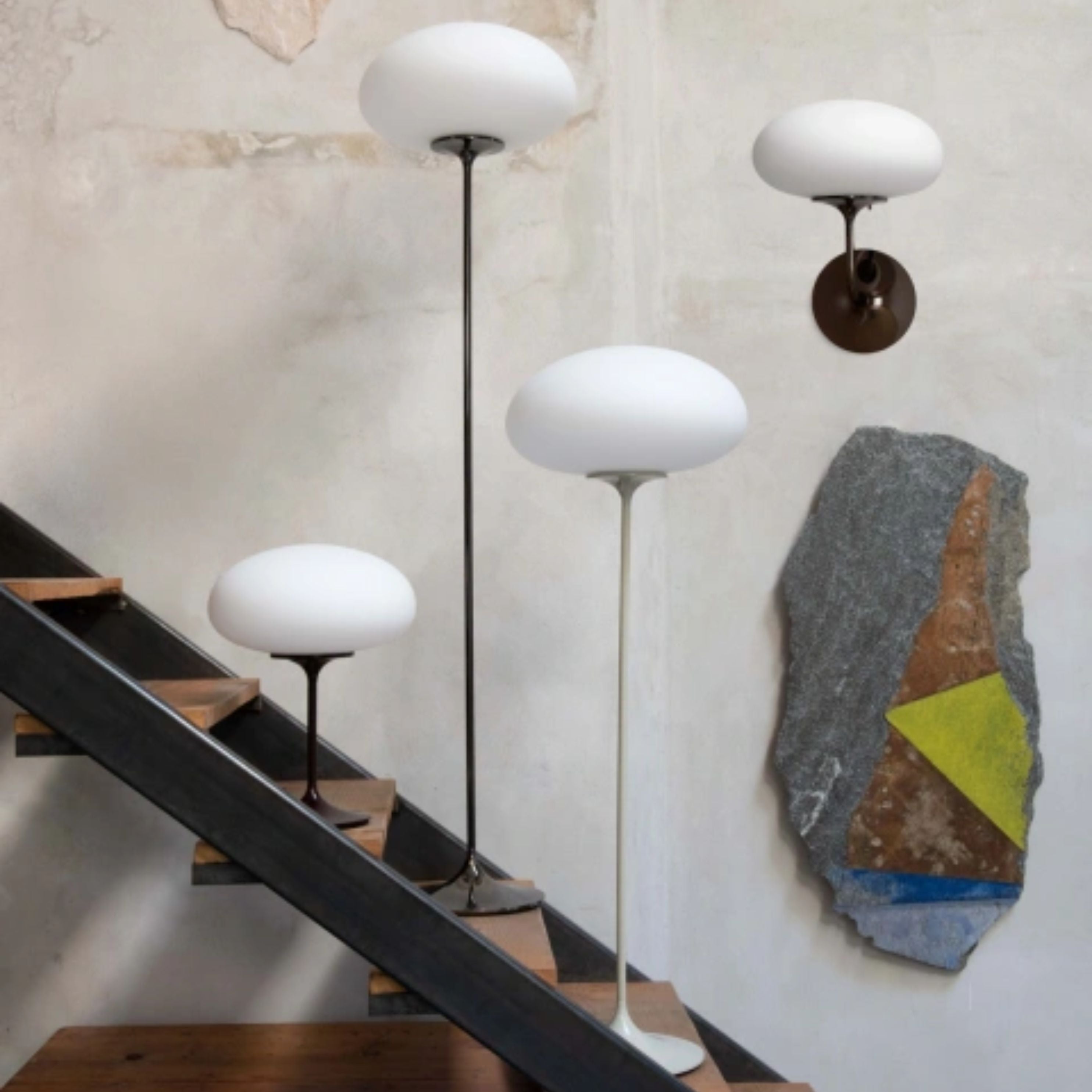 Originally conceived in 1962 by designer Bill Curry, the award-winning 'Stemlite' line became known as a 'total look' lamp. The base and shade function as a single unit, and may be mixed and matched with various bases to use as either a pendant, table, floor or wall lamp. The 'Stemlite' was used on the set of the original Star Trek series, and remained in production until 1977.