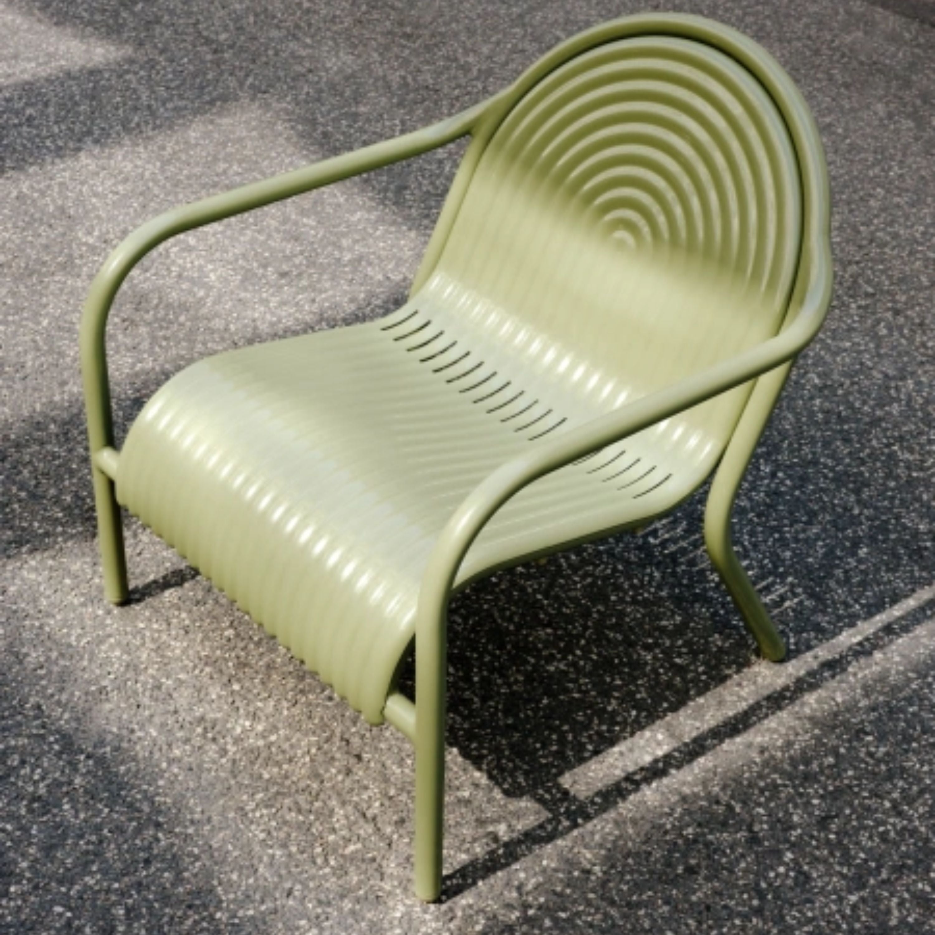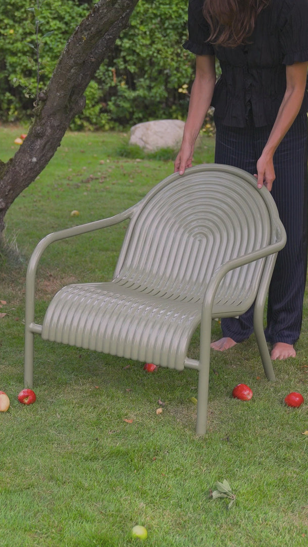 The Groove series is Tom Dixon's first outdoor furniture line. Executed in high-performance, durable aluminum, the stackable yet sturdy Groove chairs are corrosion-resistant and built to withstand the elements. Available in two powder-coated painted finishes. Inspired by Art Deco geometry, the Groove's curves make it as striking as it is practical.