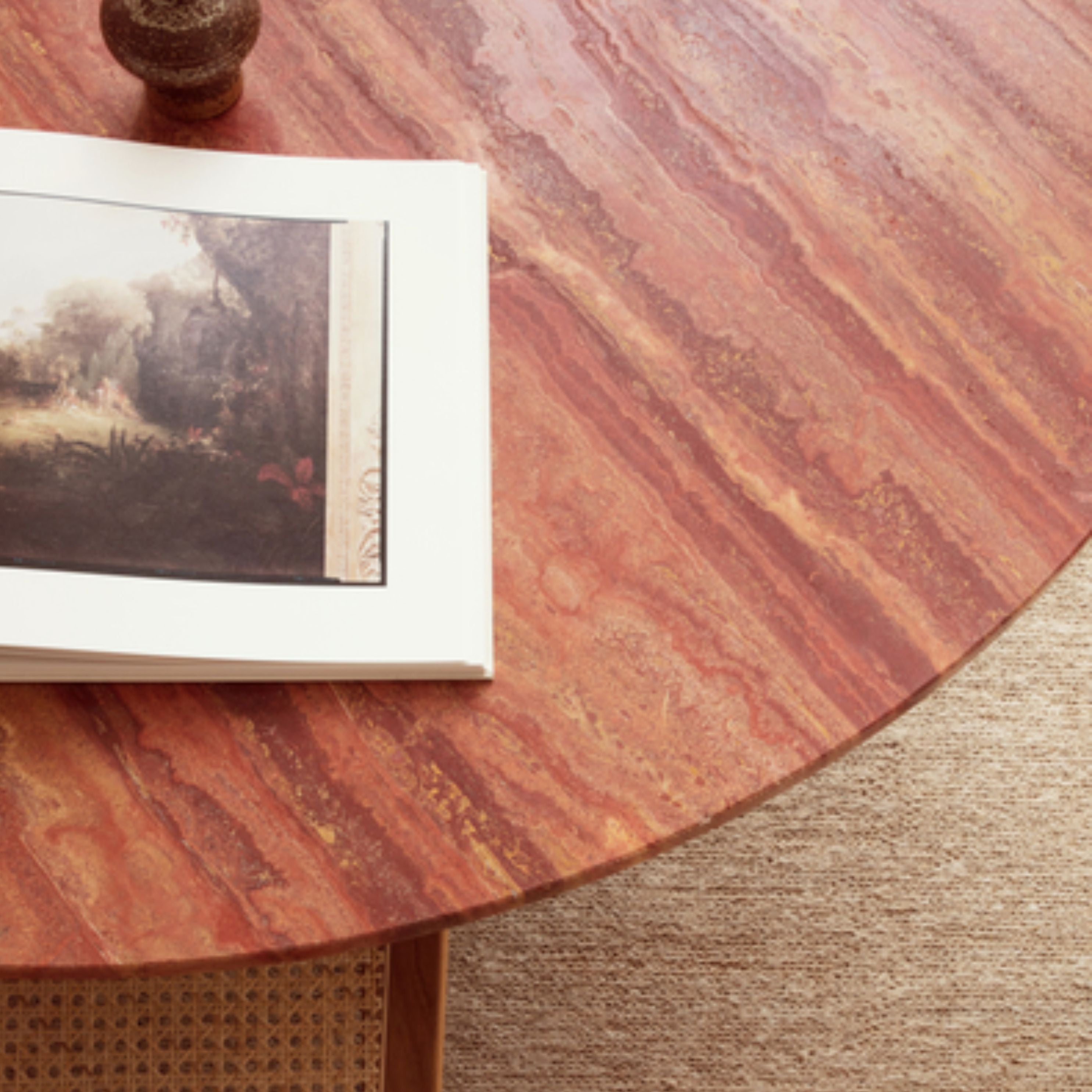 Price per item. Available in unlimited quantities in choice of burnt red or neutral white. Please specify when ordering. Also available as an elliptical dining table or various sized coffee and side tables in separate listings.