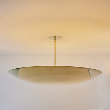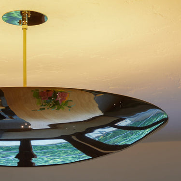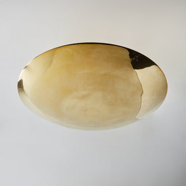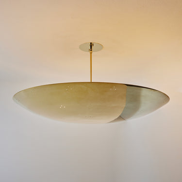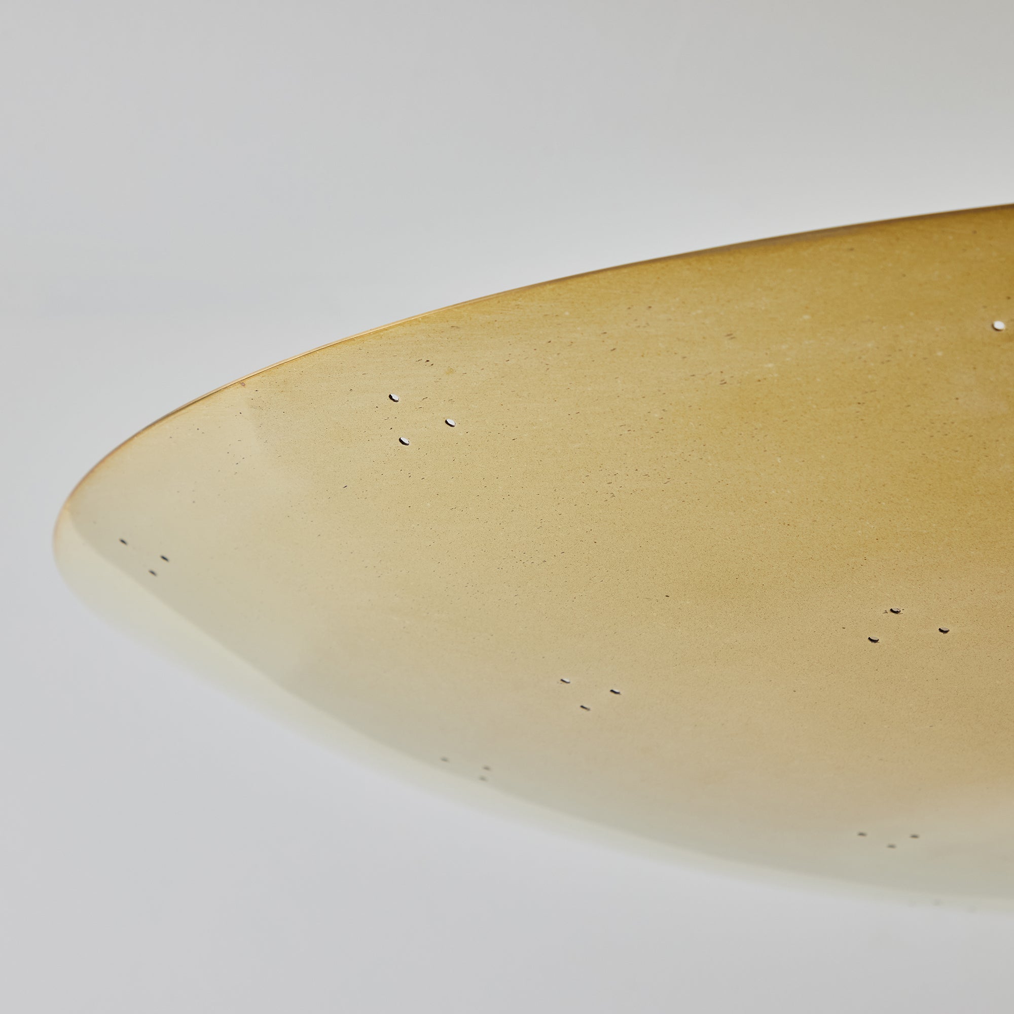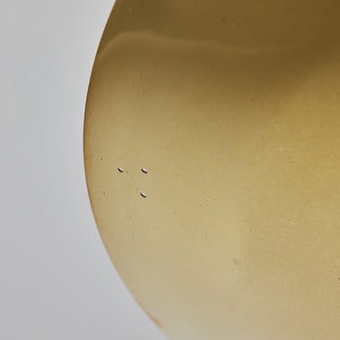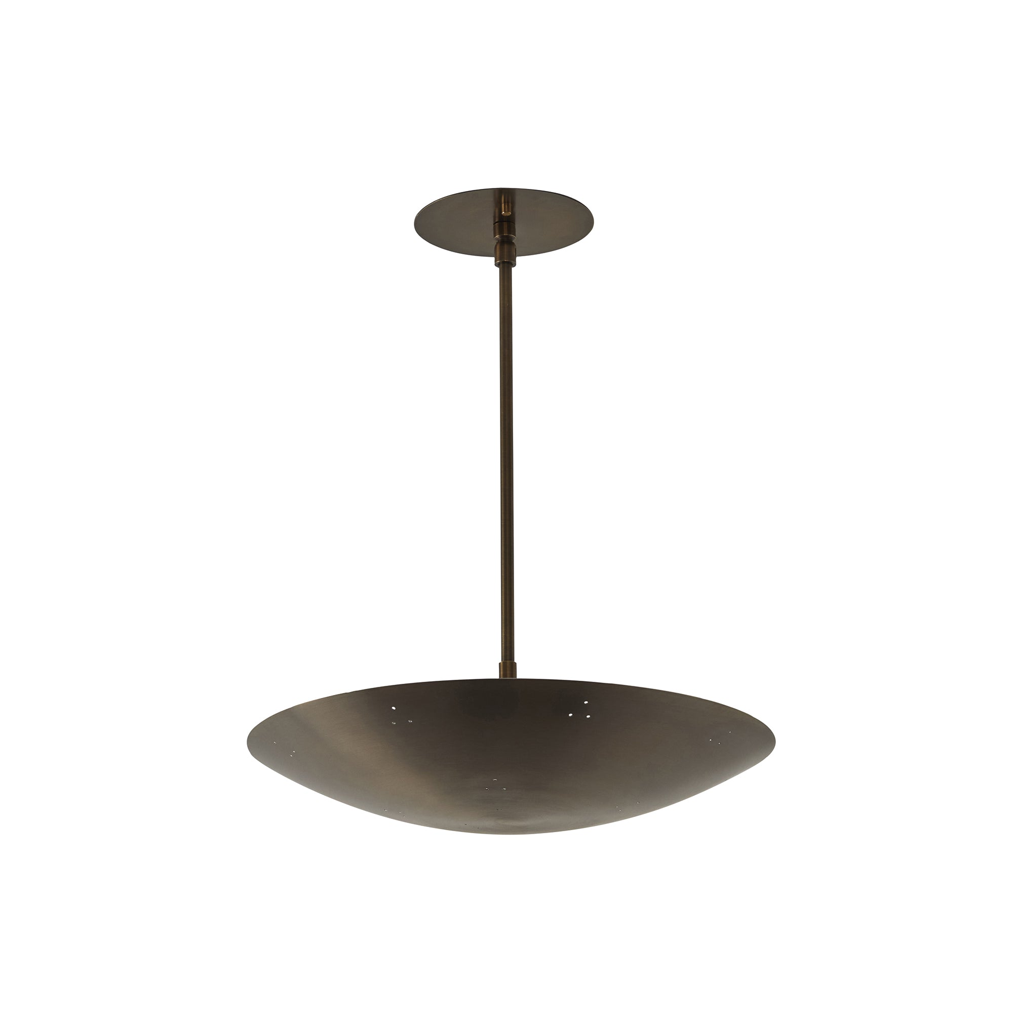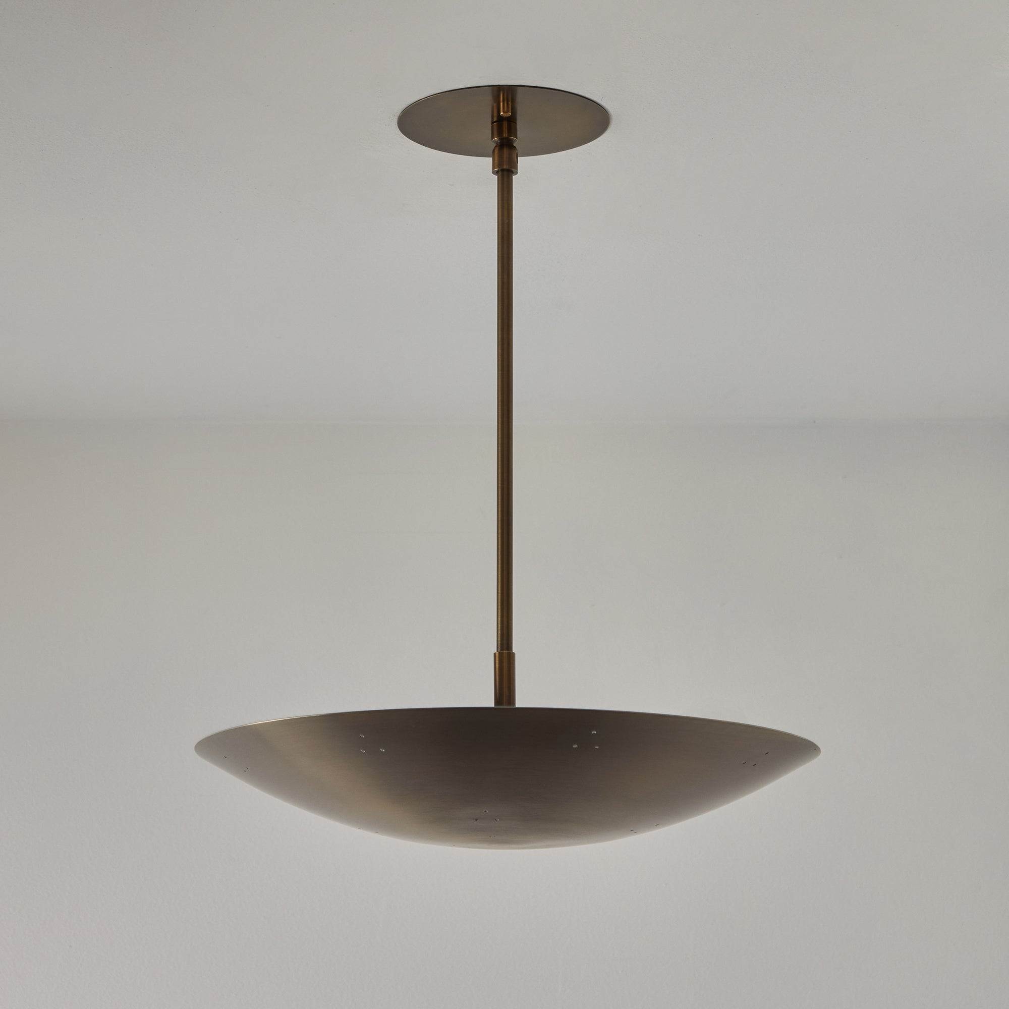 Please note that the chemical process used for the patinated brass finish can result in unique variation from piece to piece including differing hues, streaking, spotting, discoloration, patchiness and other irregularities outside and inside the dome. Patinas can also change over time due to handling, storage, and exposure to the elements, resulting in further variation and irregularities. Patination is a dynamic process which evolves in beautifully unpredictable ways to create a unique look with its own special characteristics. The patinated and polished brass versions of this lamp are executed in raw unlacquered brass; as a result, their patina will change over time with exposure to the elements or to human touch. The handcrafted perforation layout of each lamp can show variation, as the pattern is dependent upon the diameter of the lamp.