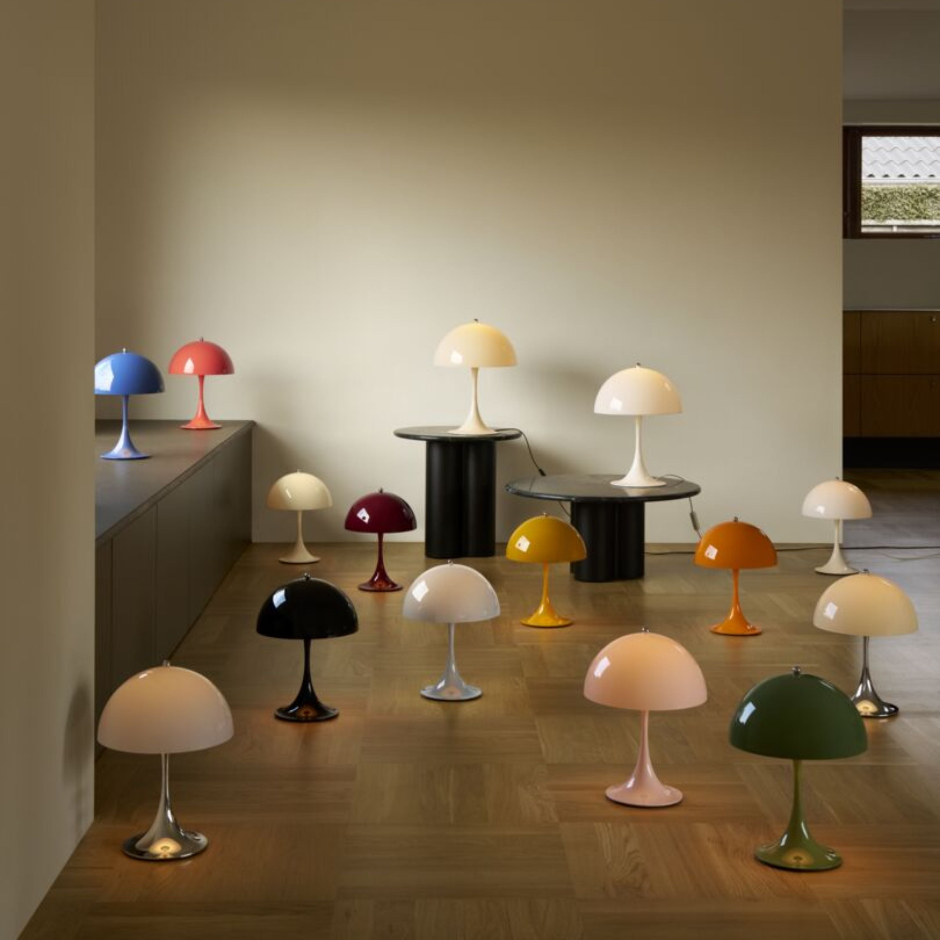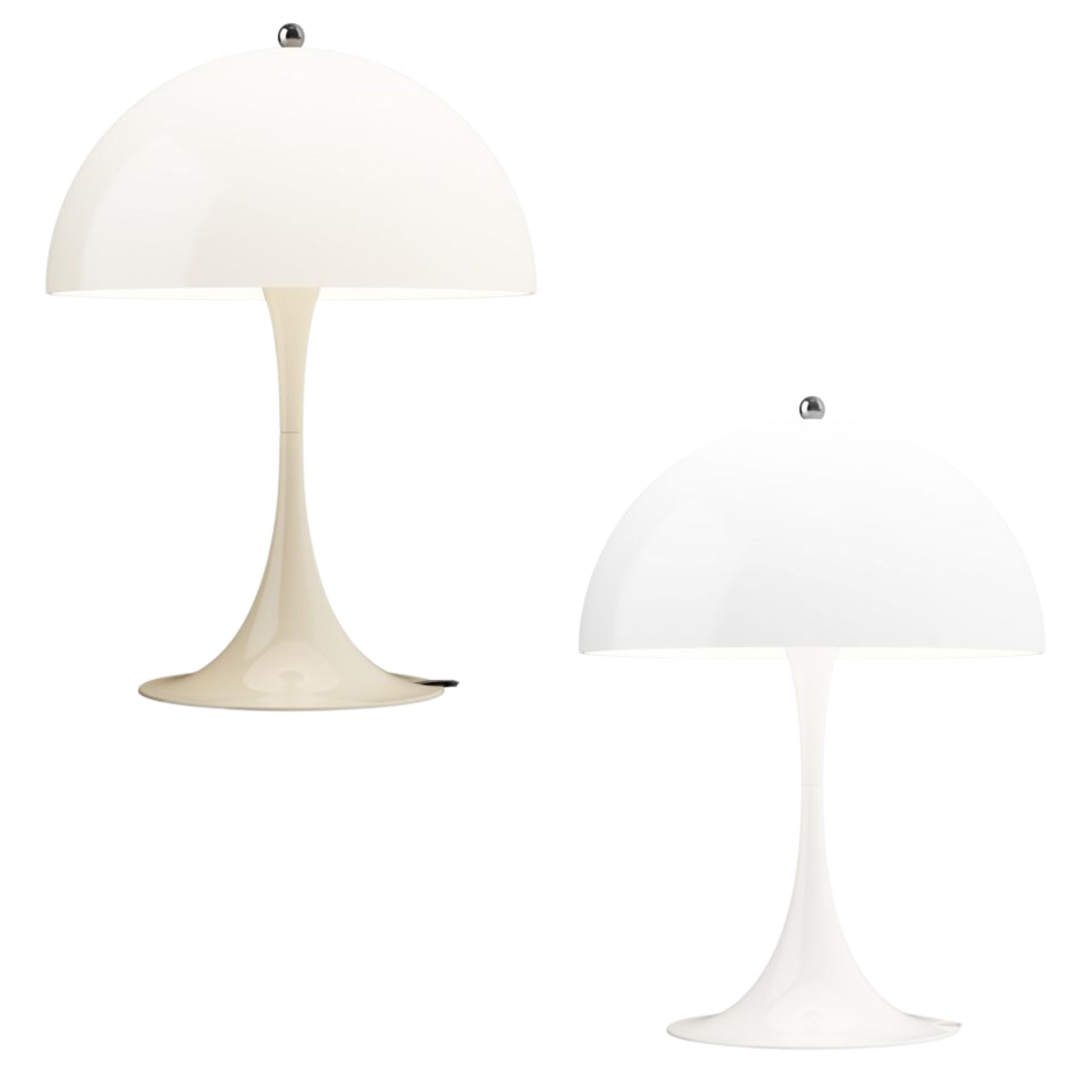 The Panthella collection, by Danish designer Verner Panton, was introduced in 1971 and remains one of his most popular lighting designs. Panton developed the Panthella table lamp to give off an organic shape and have both the foot and the shade serve as a reflector.